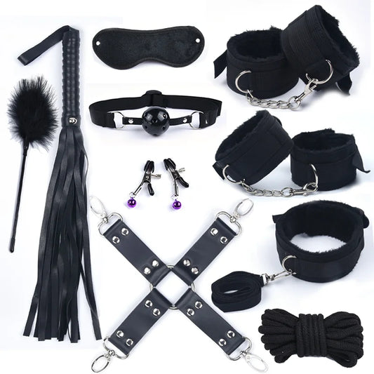 Erotic Sex Toys For Women Adults Games Nylon Bondage BDSM Kits Handcuffs Sex Whip Mouth Gag Rabbit Tail Anal Plug